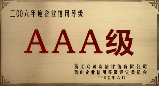 一九九八年~二00八年 AAA級(jí)企業(yè)信用等級(jí)